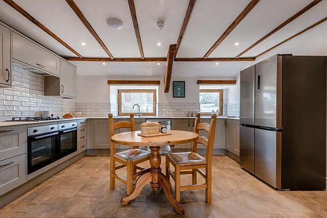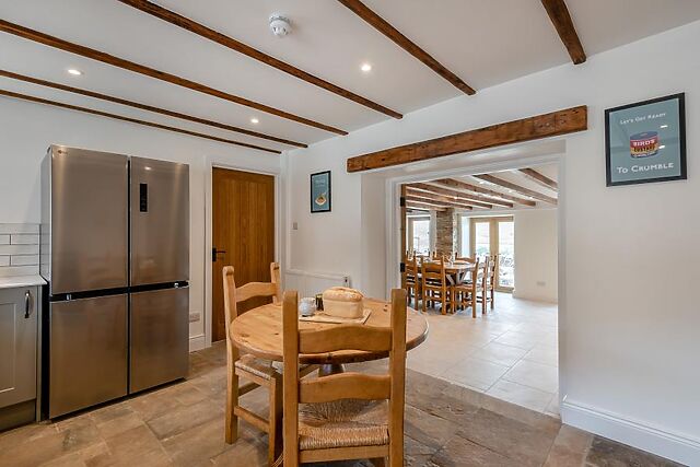 Snuggle up on the comfortable seating and enjoy leisurely evenings with a box set on the Smart TV. This room leads into the superb kitchen, where the chef of the holiday will be well equipped with everything required to cook up a feast, as well as plenty of storage and worktop space.