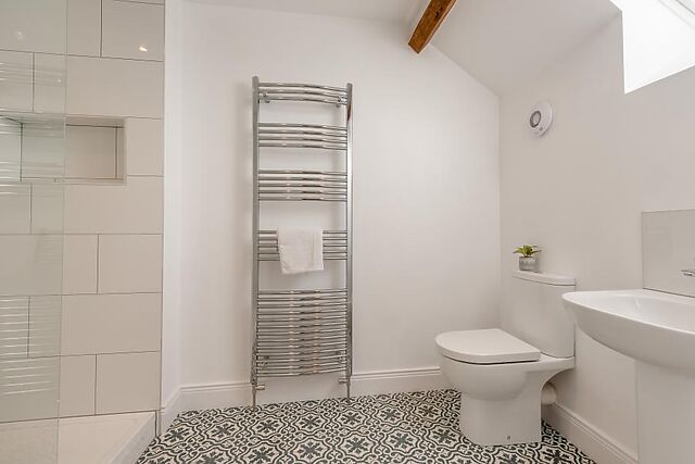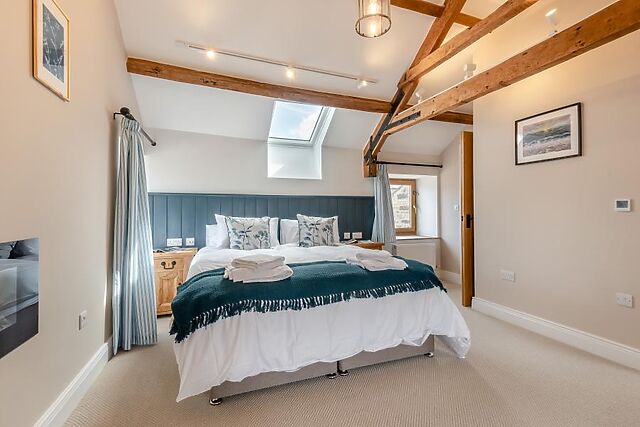 There is also an easily accessible bedroom situated on the ground floor with a king-size zip-and-link bed and an en-suite shower room, useful for guests who prefer not to use stairs. A handy WC completes this level of the house.