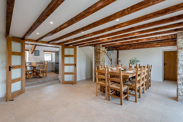 This gorgeous farmhouse has been comprehensively refurbished, adding beautiful modern amenities yet retaining features such as exposed stone walls and attractive beams. Many windows have fabulous rural views.