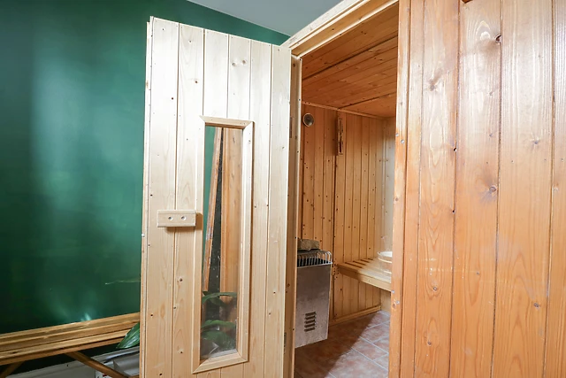 Inside, you'll find a cosy sitting room with an electric flame-effect stove and a well-equipped kitchen for culinary adventures. The dining room invites memorable meals with loved ones, while the sauna offers a spa-like experience without leaving the comfort of your cottage.