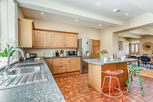 Guests can enjoy the warmth of both a wood burner located in the kitchen dining area and an open fire in the lounge, perfect for cosy evenings.