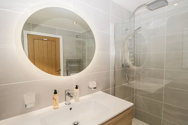 Look forward to retiring at the end of the day to one of two fabulous bedrooms, both decorated in the same style, featuring inviting king-size beds, and Smart TVs with a fantastic living flame effect, creating a homely illusion that include sound effects of a roaring fire! Step into the en-suite shower room to find a fully-tiled and sleek washing space, with a rainfall showerhead for added luxury, underfloor heating, and a de-misting mirror.