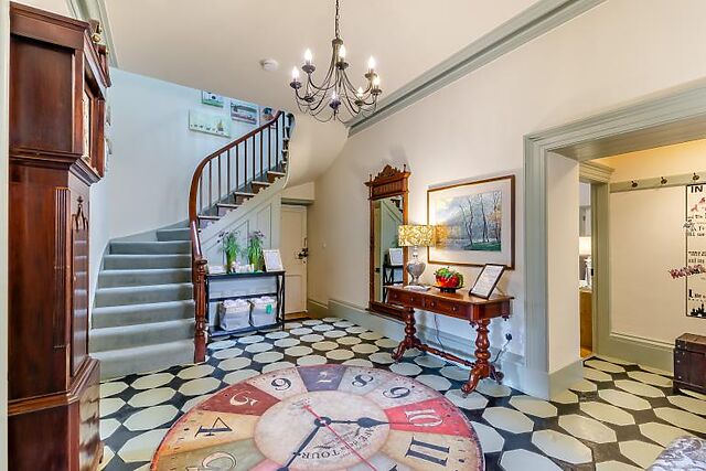 The grand entrance hall, complete with a sweeping staircase and a charming blend of antique and contemporary furnishings, sets the tone for a truly special stay. The sleek, modern kitchen and dining area are fully equipped for whipping up delicious feasts.