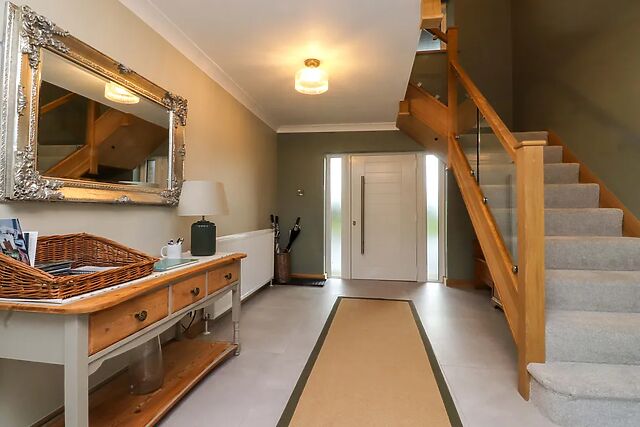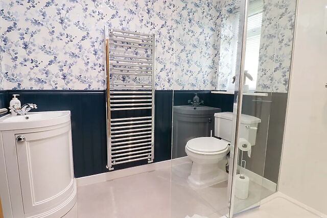 The bedrooms are carpeted throughout, offering a soft and warm underfoot experience. Two double rooms each benefit from en-suite walk-in showers, providing privacy and comfort.