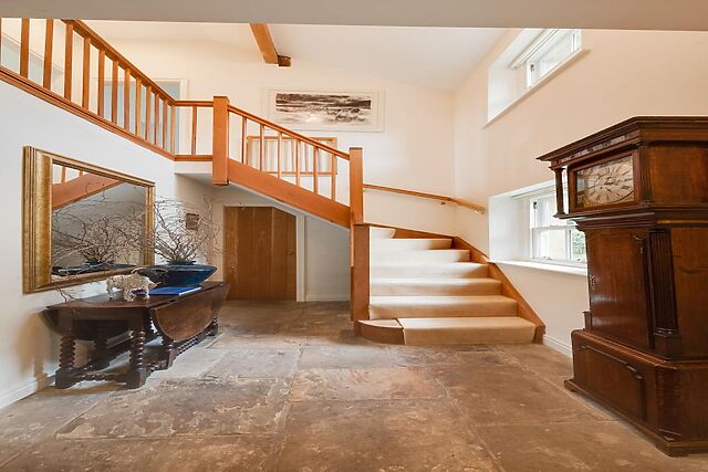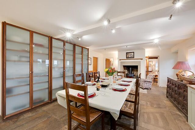 The large kitchen-dining room, equipped with a Range Cooker and modern amenities, provides ample space for preparing and enjoying meals together. The farmhouse's décor blends modern and traditional styles, creating a warm and inviting atmosphere.
