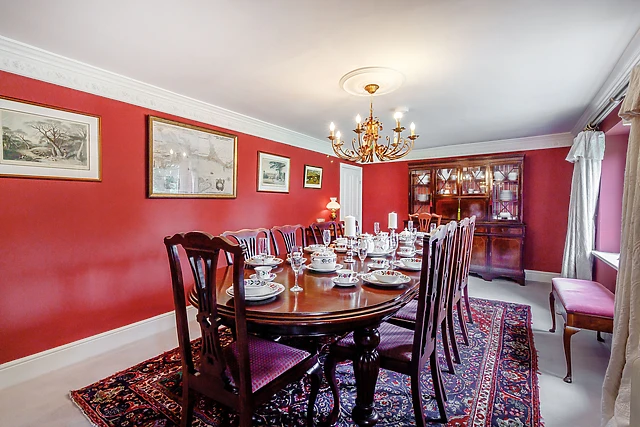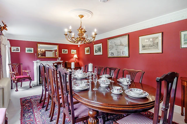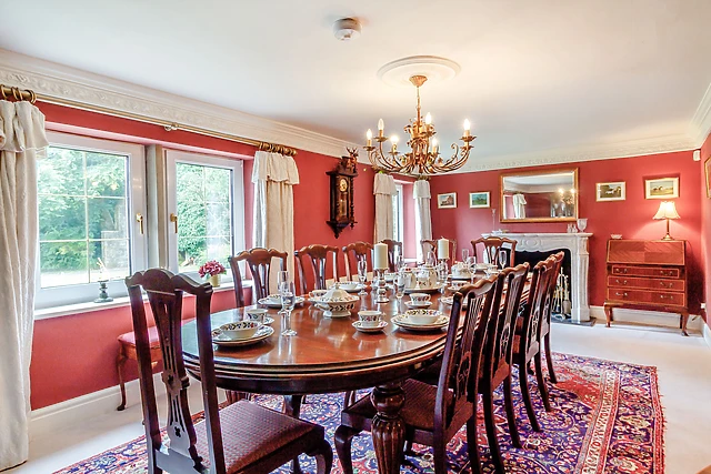 Yes, the property features multiple dining areas, including a formal dining room and a conservatory, suitable for large groups to enjoy meals together.