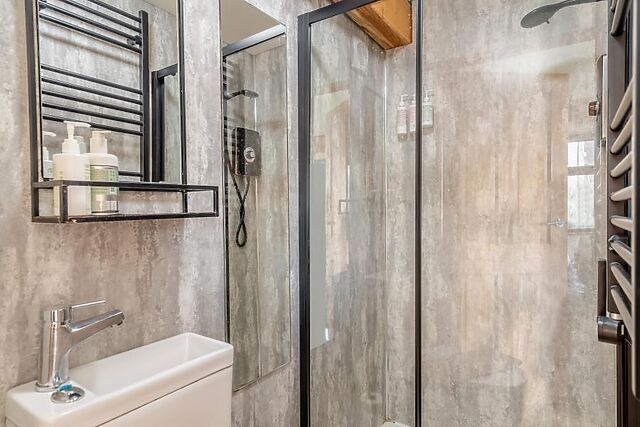Tucked away at the other end of the lodge, the blissful king-size bed is perfectly placed for you to wake up to marvellous views through the picture windows. The contemporary en-suite shower room provides everything you need to both kick-start a day’s adventure and wash off a long day on the local trails.