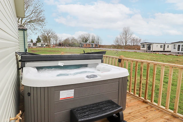 Plot 1, a single-storey lodge is situated on the outskirts of Warton Bank, near the small village of Warton, Lancashire. With an open-plan layout, a hot tub, a gas fire and a Smart TV, this abode is perfect for family and friends to enjoy.