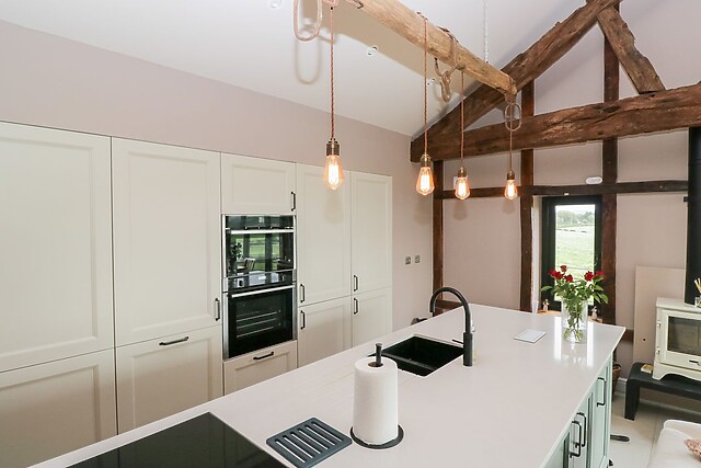 In the kitchen area, you will find everything you need for a self-catered stay. Use the electric oven and hob to cook up something delicious, then dig in at the spacious dining table.