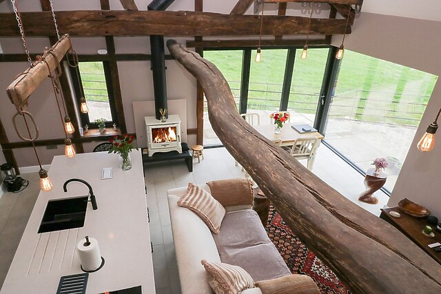 When the sun sets, head back inside to curl up next to the glow of a woodburning stove. Find a show or a film to watch on the Smart TV for some evening entertainment, or head up to the mezzanine to unwind in the intimate sitting room.