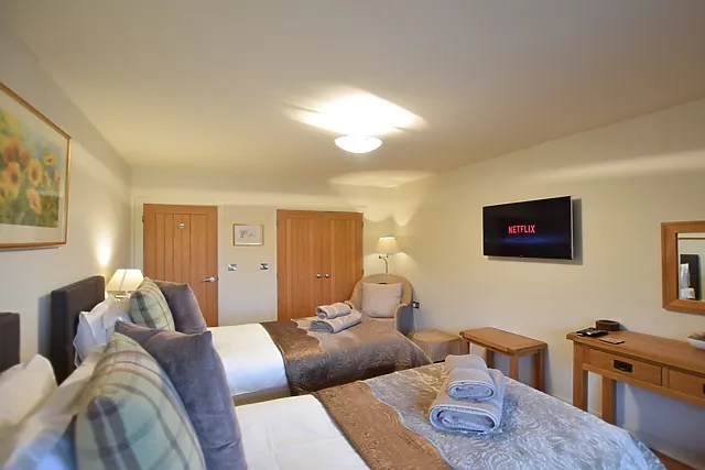This luxury accommodation sleeps 6 guests in 3 sumptuous bedrooms, with the flexibility of super-king-size zip-and-link beds.