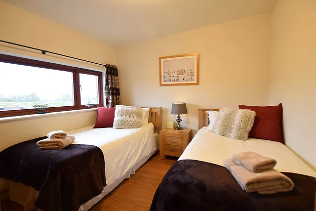 The accommodation features two super-king-size zip-and-link beds, which can be made into twins upon request, and one king-size bed. This provides flexibility for different sleeping arrangements.