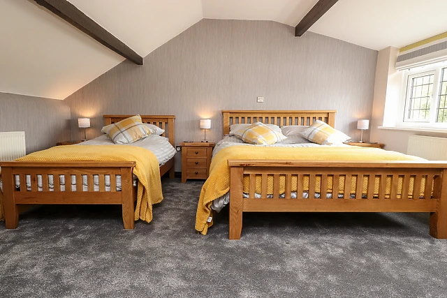 The family bedroom upstairs features a king-size and a single bed, ensuring a restful night's sleep for all.