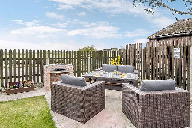 The enclosed garden also features a BBQ and a patio, ideal for al fresco dining and soaking up the rural atmosphere.