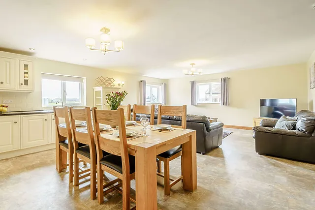Two bathrooms ensure comfort and convenience for all guests. The heart of the cottage is the open-plan lounge/kitchen/diner, fully equipped for a self-catering stay.
