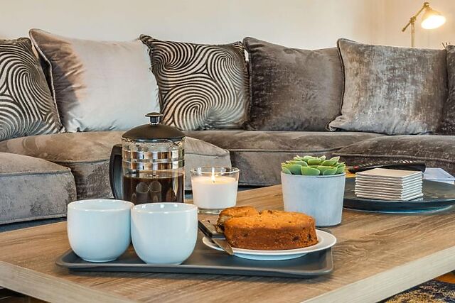The accommodation boasts a range of contemporary comforts, including a well-equipped kitchen, a cosy lounge with a wood burner, and a delightful garden room offering views of the private garden.