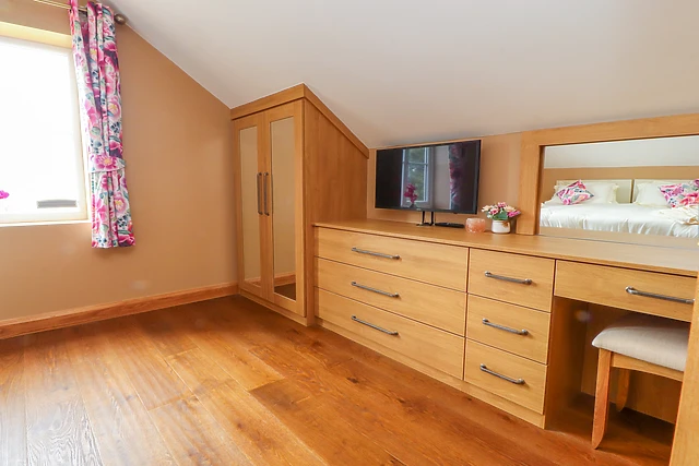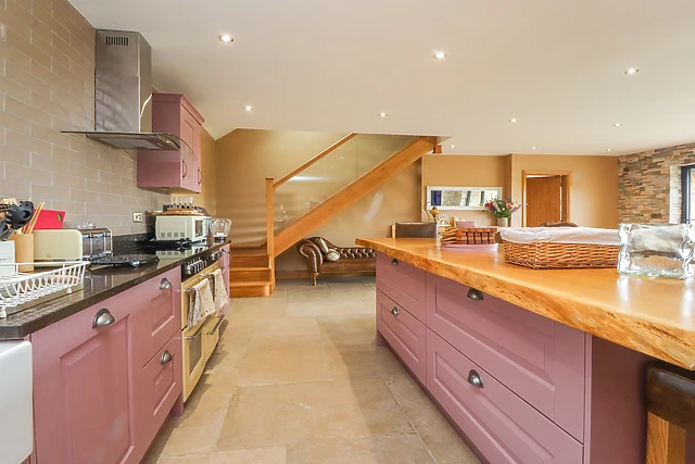 You can imagine spending time relaxing in the sofa area soaking up the warmth from the log-effect fire maybe with a steaming cup of hot chocolate or if you want to find an alternative space to chill out then check out the first-floor snug area which comes complete with a bespoke window seat offering stunning rural views, a sofa and a TV, perfect for just switching off from it all and getting into the holiday vibe. The impressive kitchen and dining space offer an impressive space where the designated chef can create a culinary masterpiece while the adjoining dining area is the ideal spot to pull up a chair and keep the chef company while regaling each other with holiday tales and enjoying a glass of your favourite tipple.
