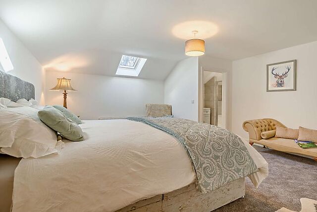 A ground-floor double bedroom provides easy access for guests with reduced mobility, and there’s a bathroom with a shower over the bath just across the hall. Upstairs, discover a bright and breezy super-king-size bedroom with its own en-suite shower room – a calm sanctuary after a busy day’s adventure.