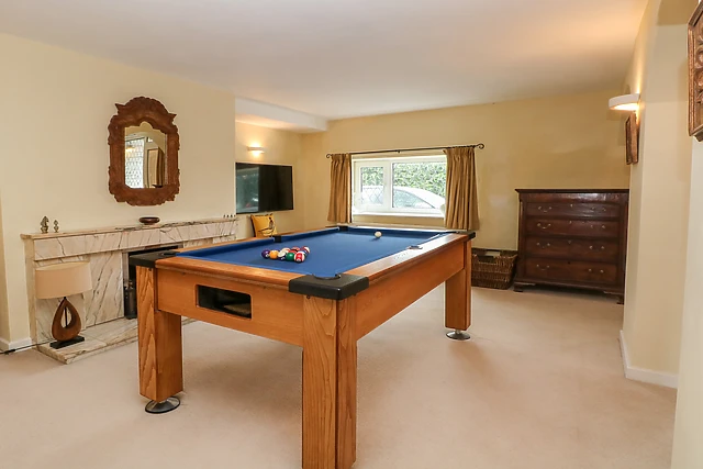 An additional sitting room offers a quiet corner to unwind with a good book or a favourite film. For added entertainment, challenge your companions to a game of pool in the games room.