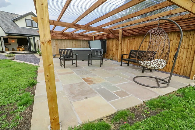 Yes, the property boasts a luxurious covered hot tub in the large rear garden, providing an ideal space for relaxation and stargazing.