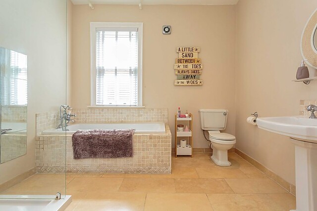 Inside, you will find a spacious and well-equipped kitchen/diner, where you can rustle up family favourites, ready to savour at the dining table as you toast to a memorable family get together, a handy utility, a cloakroom for your convenience, and a lovely sitting room with plush sofas and a large TV with Netflix, ideal for movie nights with loved ones. Upstairs, you will find five stunning bedrooms, two king-size, a double with access to its own en-suite shower room, and two twins with zip/link, the latter of which have access to two well-appointed bathrooms, complete with bath and shower so you can choose how best to freshen up at the end of the day.