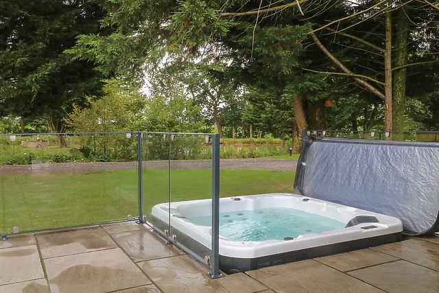 Yes, the accommodation features a private hot tub on the enclosed rear patio, providing guests with the perfect spot to unwind and relax during their stay.