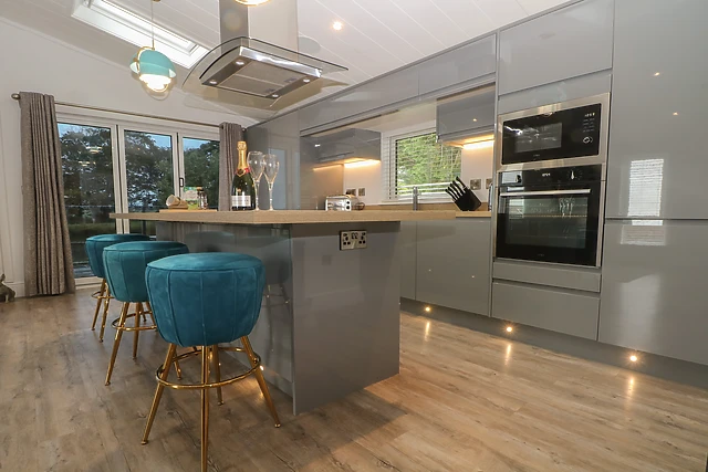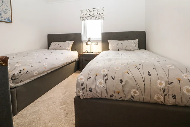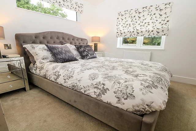 The lodge boasts a master bedroom with a king-size bed, en-suite facilities, and a second bedroom with twin single beds, ensuring a restful night's sleep.