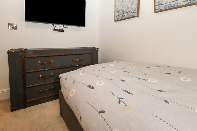 The accommodation can comfortably sleep up to four guests, with a master bedroom featuring a king-size bed and a second bedroom with two single beds.