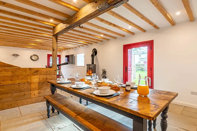 Indulge in the warmth of the wood burner after a day of adventure, or unwind in the private hot tub while gazing at the stars. The open-plan living space, complete with a top-of-the-range kitchen and cosy lounge area, is the perfect spot for gathering with friends and family.