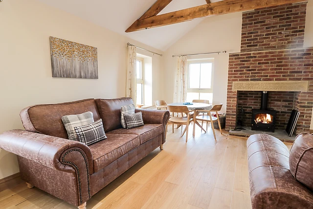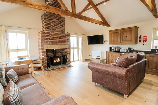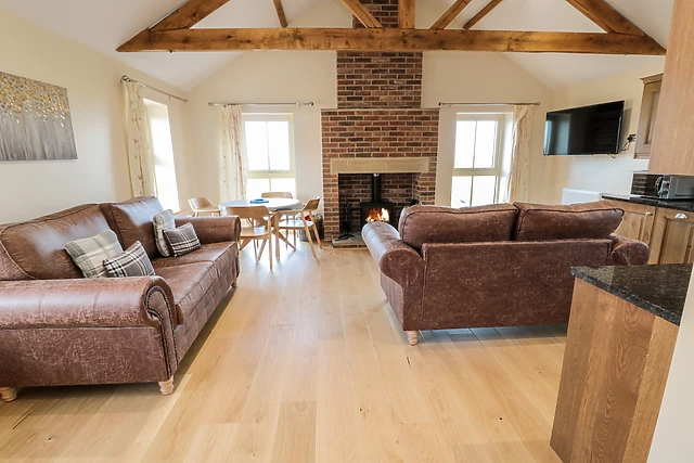 Upon entry, be delighted by the exposed wooden beams, feature red-brick wall, as well as a light and airy space, combining comfort with character. The open-plan living space makes is a real social hub of the property, with a wall-mounted Smart TV to provide the evening's entertainment.