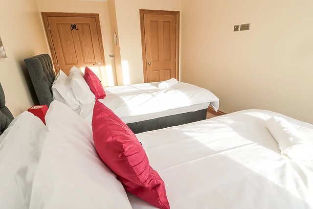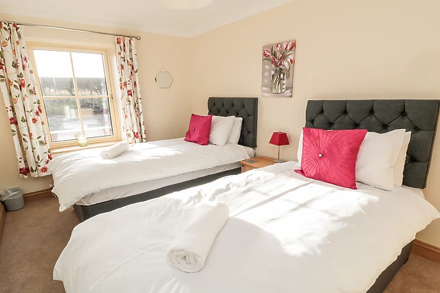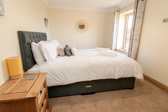 Open the doors into the garden for a dip in the hot tub for a spot of tranquillity before the chef gets to work. When nighttime rolls around, retire in either a king-size room or a twin, all boasting warm, neutral tones overlooking the serene landscape to provide a peaceful haven to catch your rest.