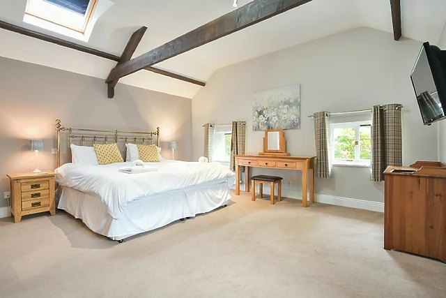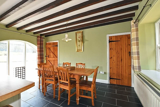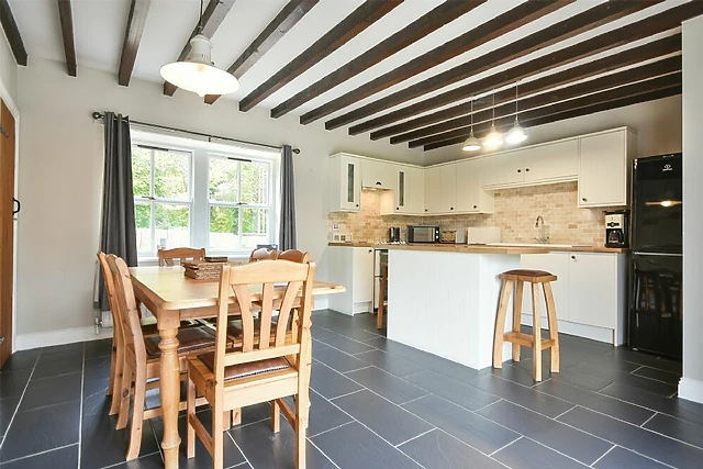 Take a seat in the stunning sitting room threaded with historic roof beams and sporting a stone feature wall where a woodburning stove awaits, an ideal spot to warm up in the cooler months, or when the sun is shining, why not open the double glass doors and let the fresh air in? The kitchen/diner is steeped in history and heritage, punctuated by roof beams and traditional windows, and melts seamlessly with the contemporary design and amenities which have been carefully chosen to cater to all of your culinary needs, whilst giving enough space for guests to cook and dine together.