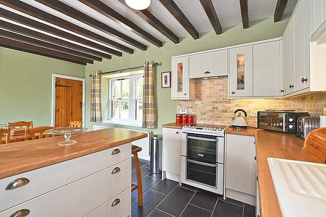 A contemporary bathroom allows you to enjoy a soak amongst the bubbles before you settle down for the night in one of the three beautiful bedrooms, beginning with a super-king-size with a handy en-suite, as well as two twins, all with storage and traditional cottage décor. Outside you will find a table and chairs, ideal for alfresco dining.