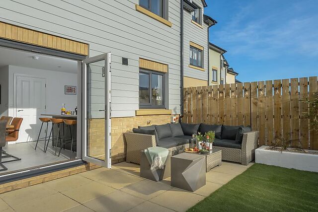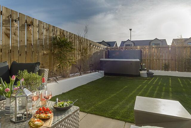 Outside, the enclosed west-facing garden has an artificial lawn, comfortable seating for eight, a BBQ and a private hot tub with feature lighting. Parking for two cars is provided on the drive, with additional roadside parking and a free car park opposite.
