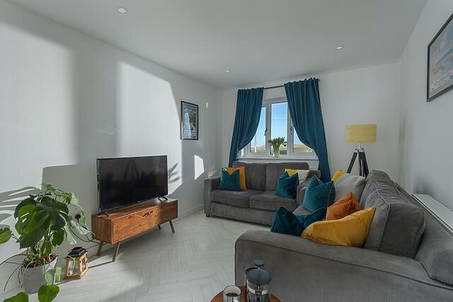 Upstairs, the airy lounge is a standout feature, with full-width bi-fold doors leading onto a balcony for soaking up those coastal views with a coffee or evening tipple. There are four bedrooms – two king-size rooms (both with en-suite shower rooms and one with sea views), a double bedroom, and a cosy twin – plus a family bathroom and separate WC.