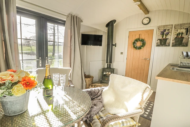 Immerse yourself in the rustic elegance of this shepherd's hut, which offers a unique blend of traditional charm and modern amenities.