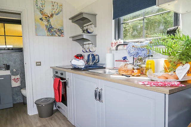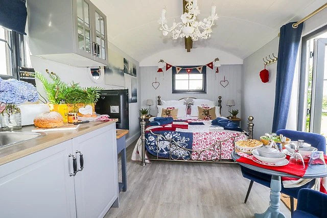 The accommodation is a beautifully appointed shepherd's hut, designed to sleep two guests in cosy splendour.