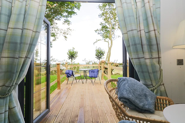 Kick off your shoes and relax in front of the TV for a couple of hours while the woodburning stove gently roars in the background. From here, utilise the kitchenette and whip up a delicious meal for your loved one to enjoy at the dining table over a glass of wine, or perhaps take your meals alfresco and admire the views while out on the decking.