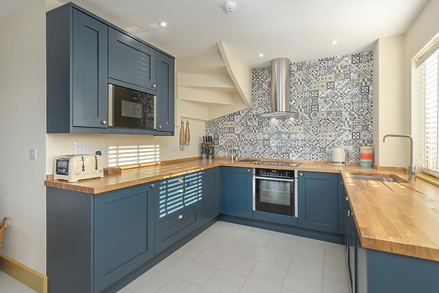 Open the doors to bring in a sea breeze or wander out to the hot tub on the large balcony to pamper yourself for a spell. The high-quality kitchen has been added neatly to the space, ensuring you have everything you need to cater for yourselves within easy reach.
