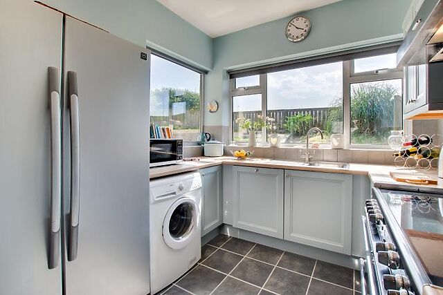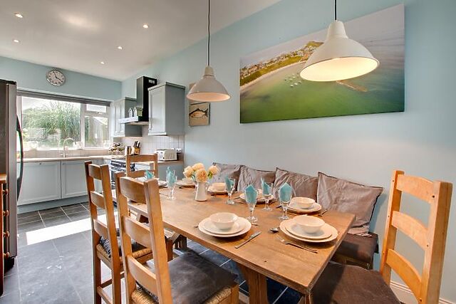 Seacot boasts five comfortable bedrooms and two bathrooms, ensuring ample space for everyone. The open-plan kitchen/diner is modern and well-equipped, while the large lounge features cosy sofas and a log burner, perfect for relaxing evenings. The upstairs double bedroom offers stunning balcony views across the dunes.