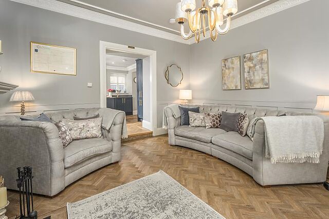 Through the front door, you’re welcomed into a spacious entrance hallway that features beautiful herringbone-style flooring and plenty of room to hang coats and store boots. Lead the way through into the cosy lounge, which combines beautiful rustic features with contemporary elegance, boasting stunning décor, plantation shutters, gorgeous period features and a roaring open fire.