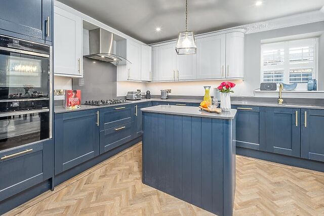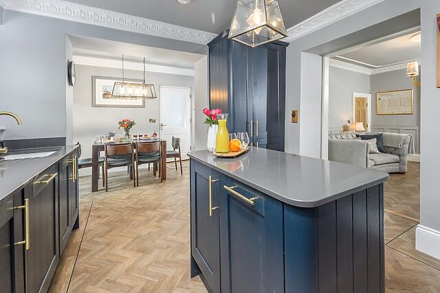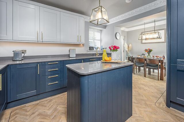 Featuring bespoke wooden cabinets, the sleek and stylish adjoining open-plan kitchen/diner is a haven for budding cooks, equipped with everything required to rustle up perfect picnics and delicious dinners. Looking out through a set of French doors to the garden, the dining table is perfectly placed to make the most of outdoor/indoor living during the warmer months.