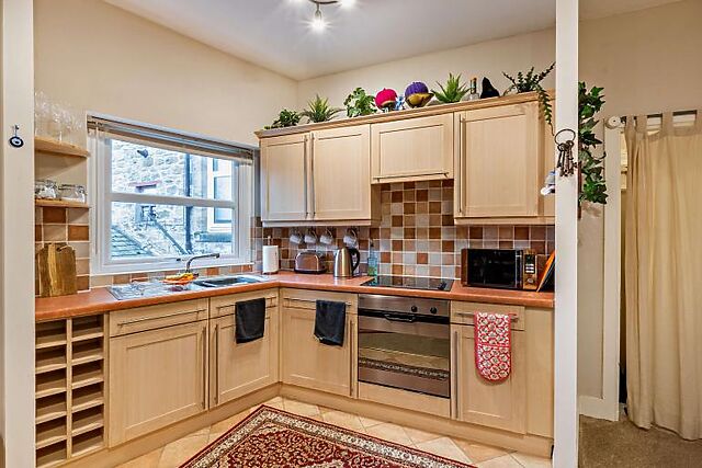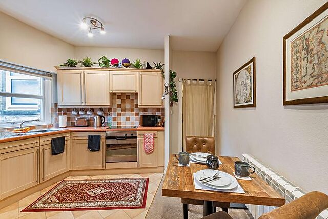 The well-equipped kitchen and dining area provide everything you need for a cosy meal in.