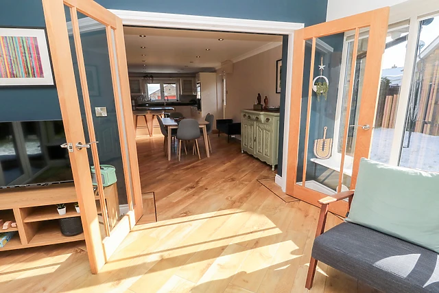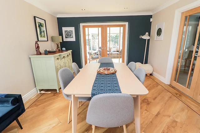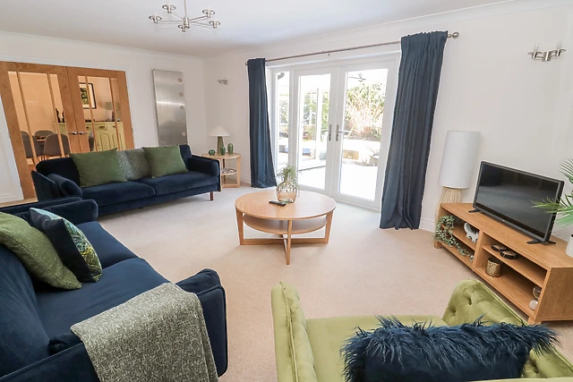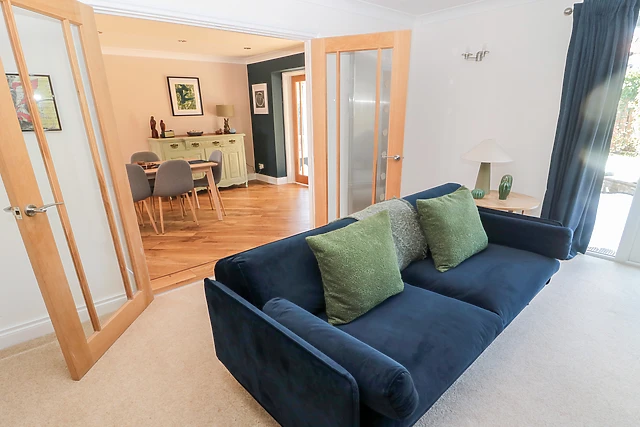 Inside, the décor is bright, and welcoming, helping to create an inviting ambience for guests. Step into the spacious sitting room which has gorgeous French doors, which flood the room with light, and take a seat on one of the comfy sofas, kick back and relax.