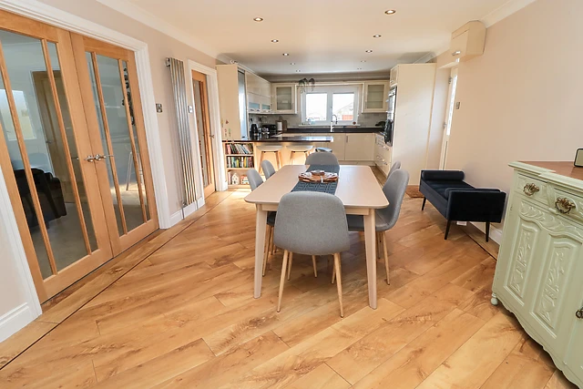 When it’s time to eat, make your way to the expansive open-plan kitchen/diner which is fully equipped with everything needed to produce hearty meals for the group. Pull up a stool at the breakfast bar, pour yourself a glass of your favourite tipple and keep the designated chef company.
