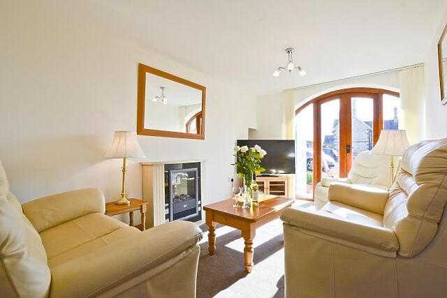 Inside, you'll find a comfortable lounge area where you can unwind after a day of exploring. The kitchen/diner is bright and airy, thanks to French doors that open onto a gravel patio. The patio is furnished, making it ideal for alfresco dining in the peaceful garden setting.