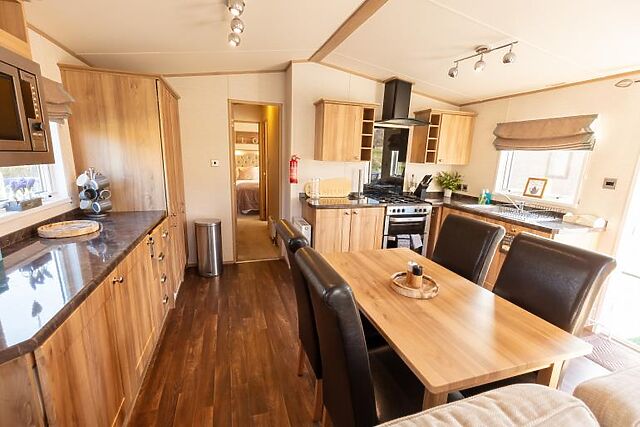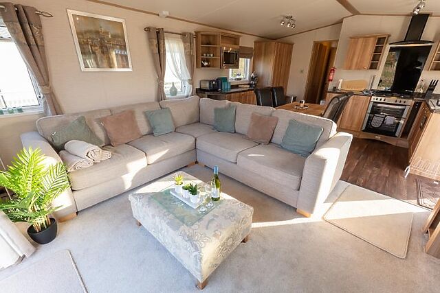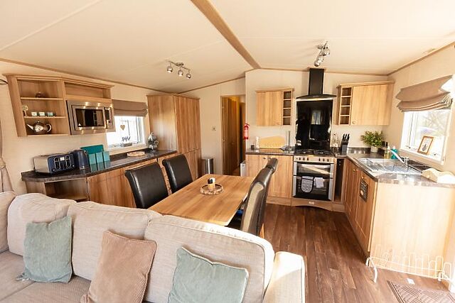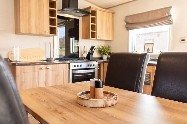 Other notable attractions include Seahouses and Bamburgh Castle, both within 25 miles. The single-level cabin features a practical open-plan lounge/kitchen/diner, with the lounge area offering comfortable sofas arranged around a TV and flame-effect electric fire for cosy evenings in.