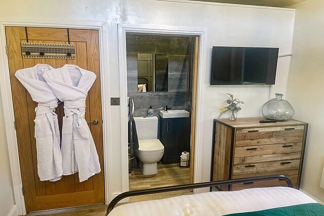 The sitting area centres around the woodburning stove, where the gentle crackle of logs adds warmth and atmosphere after days spent exploring the surrounding landscape. Three bedrooms await when it’s time to unwind, including a double with its own en-suite shower room, a twin, and a bunk room ideal for younger guests.