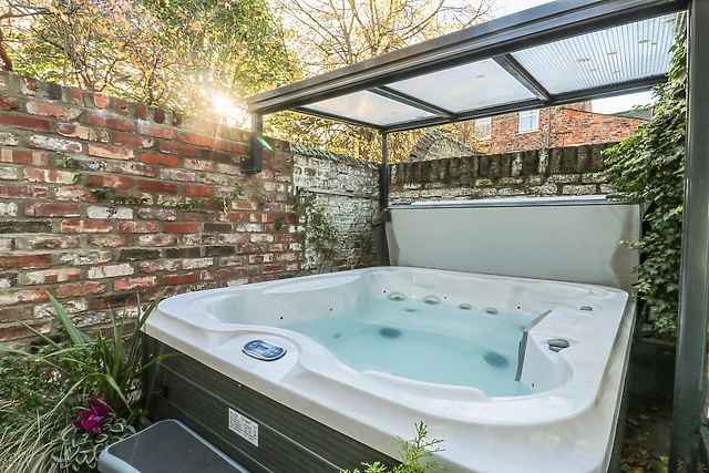 Yes, the property includes a luxurious hot tub, perfect for relaxing after a day of sightseeing or shopping in the city.