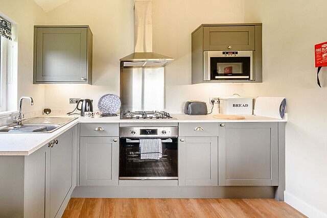 The lodge is equipped with gas central heating and underfloor heating in the bathroom, ensuring a warm and cosy environment. Additionally, there is a woodburning stove for extra comfort.